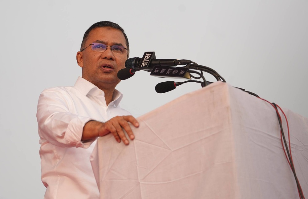 বাংলাদেশে ফিরে রাজধানীর ৩০০ ফিট সড়কে বিএনপি আয়োজিত সংবর্ধনা মঞ্চে বক্তব্য রাখেন তারেক রহমান (ছবি: বিএনপি মিডিয়া সেল)
