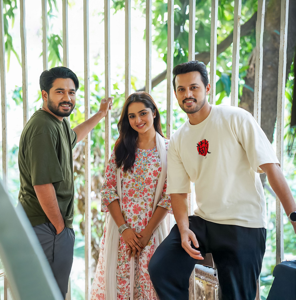 ‘এটা আমাদেরই গল্প’ সিরিজের শুটিংয়ে খায়রুল বাসার, কেয়া পায়েল ও ইরফান সাজ্জাদ (ছবি: সিনেমাওয়ালা)