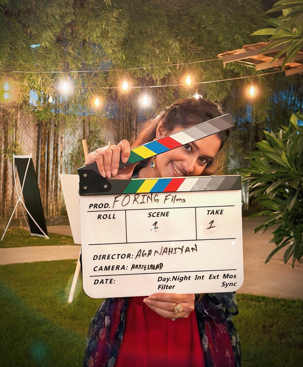 তাসনিয়া ফারিণের হাতে ফড়িং ফিল্মসের ক্ল্যাপবোর্ড (ছবি: ইনস্টাগ্রাম)