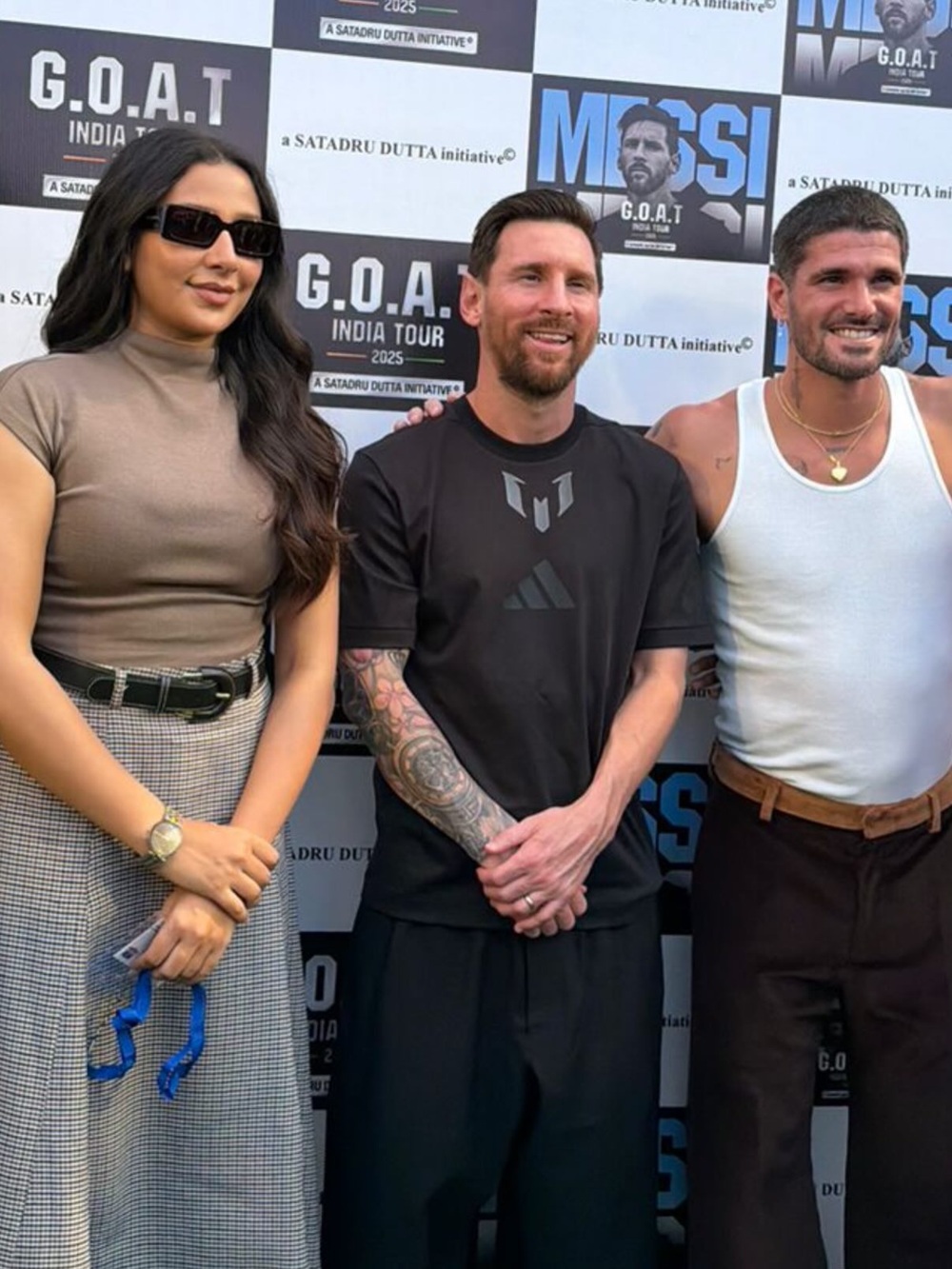 আর্জেন্টাইন তারকা লিওনেল মেসি ও তার ‘বডিগার্ড’ খ্যাত রদ্রিগো দে পলের পাশে শুভশ্রী গাঙ্গুলী।
