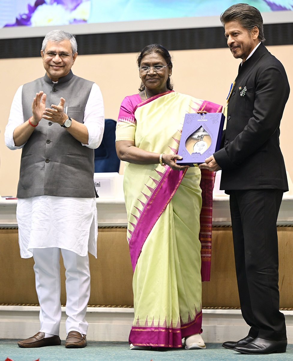 ভারতের রাষ্ট্রপতি দৌপদী মুর্মুর হাত থেকে জাতীয় পুরস্কার নিয়েছেন শাহরুখ খান (ছবি: এক্স)