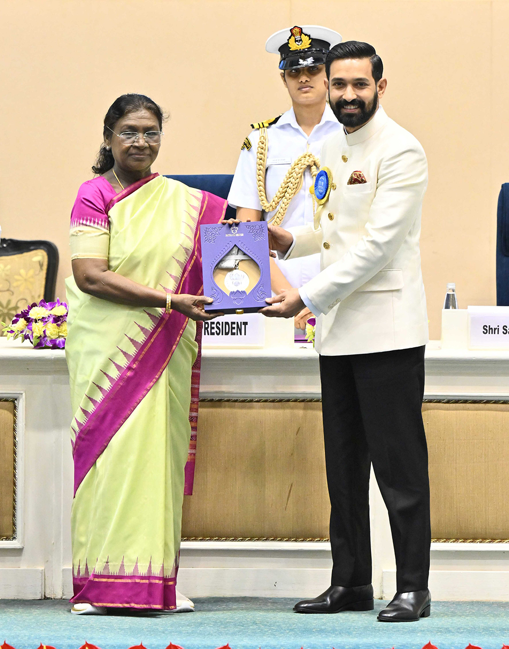 ভারতের রাষ্ট্রপতি দৌপদী মুর্মুর হাত থেকে জাতীয় পুরস্কার নিয়েছেন বিক্রান্ত ম্যাসি (ছবি: এক্স)