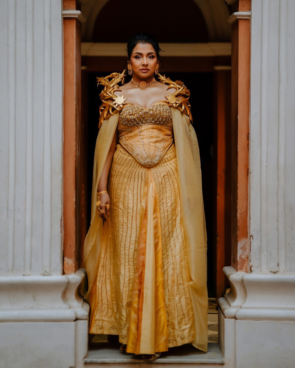 ‘আমি ঢাকা’ ফ্যাশন হাউসের যাত্রা শুরুর ফটোশুট করেছেন রুনা খান। তাকে ‘সূর্যদেবী’র মতো সাজানো হয়েছে। তার মাঝে যেন ঠিকরে পড়ছে স্বর্ণে সুশোভিত দীপ্তি। এতে মূর্ত হয়েছে আগুন, শক্তি ও জাগরণ। রুনা খানের ছবিগুলো তুলেছেন রনি রেজাউল।